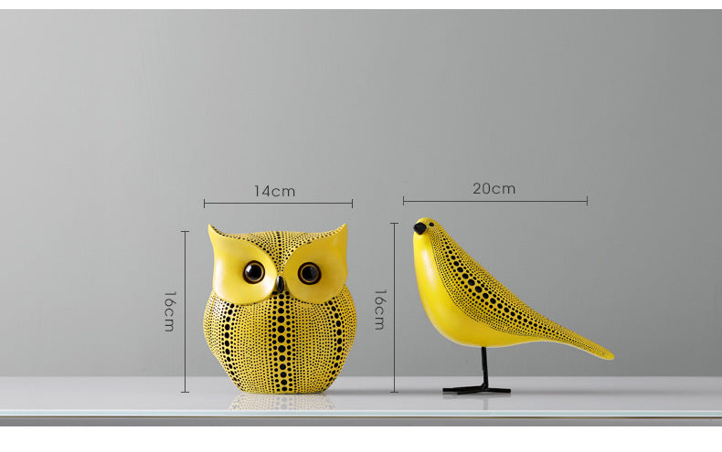 鮮やかな黄色と特徴的なドット模様が目を引く、ポップアート風のオブジェです。パプリカ、フクロウ、カボチャ、鳥の4種類展開で、お部屋に個性的なアクセントを加えます。お洒落な部屋を演出してみませんか?